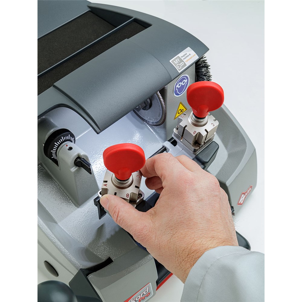 Rekord Pro دستگاه برش کلید مکانیکی برای کلیدهای سیلندر تخت و خودرو و کلیدهای صلیبی شکل است. این دستگاه دارای گیرههای چهار طرفه با چرخش آسان و دستههای ارگونومیک، یک نقطه ردیاب مکانیکی با تنظیم میکرومتری و یک محفظه ابزار عریض برای استفاده روزمره و کاربردی است که توانایی ساخت انواع کلید های استاندارد مسکونی ، ماشینی و موتور سیکلت و کلید های چهارپر را نیز دارد